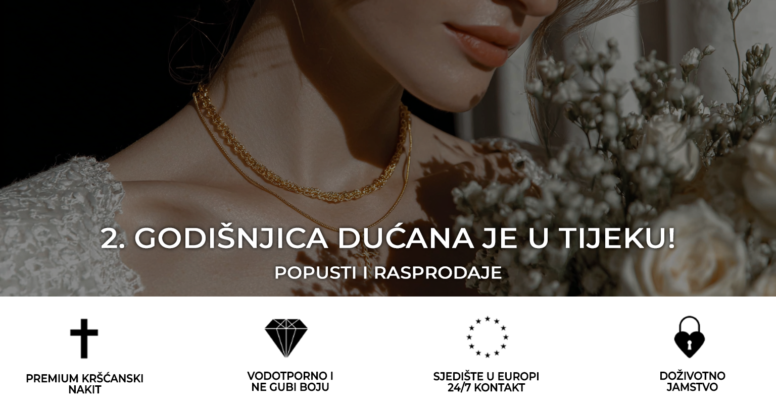 Svaki komad dolazi s doživotnim jamstvom. Ako nakit izblijedi ili potamni, zamijenit ćemo ga bez dodatnih troškova. Imajte na umu da ovo jamstvo ne pokriva štetu nastalu nepravilnim rukovanjem ili pretjeranim trošenjem.